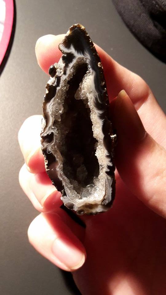 Nachtrag: Flammenachate oder manche auch Wolkenachate genannt, wegen ihrer wolkenähnlichen Zeichnungen am Rande der Geode, finden sich auch an diversen Fundstellen in Mexiko. Die bekanntesten Flammenachate stammen aber aus dem Paranabecken oder von Rio Grande do Sul.