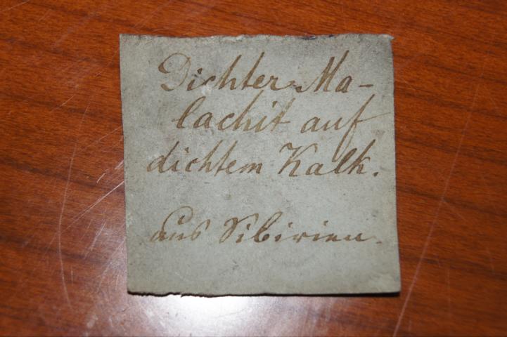 bei diesem Malachit aus einer alten Sammlung ist es mir nicht möglich den Fundort zu entziffern.