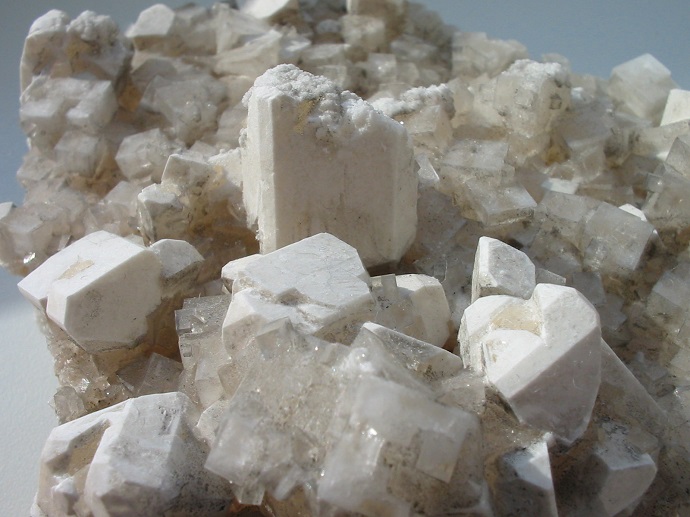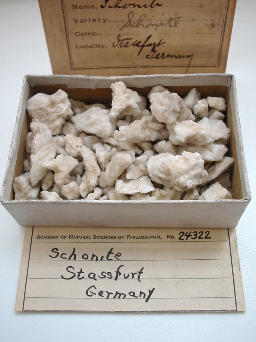 Unregelmäßige xx-Aggregate von Leopoldshall in Sachsen-Anhalt. Altes Material aus dem Bestand der Academy of Natural Sciences of Philadelphia. Wohl aus dem Originalmaterial. |