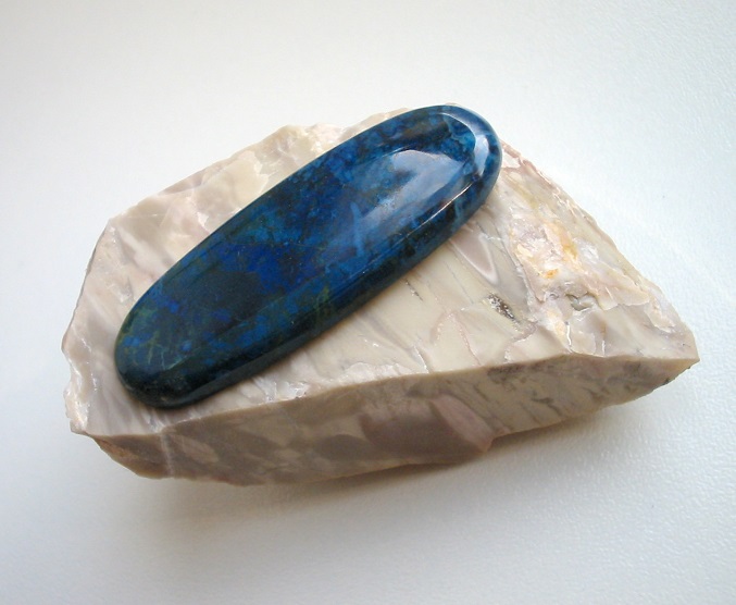 | Information: | 4 cm Cabochon des "Deutschen Lapis" aufgelegt auf Rohstein. |