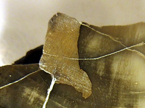 Es sind typische Merkmale für fossiles Holz zu erkennen,auch eine