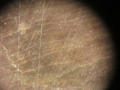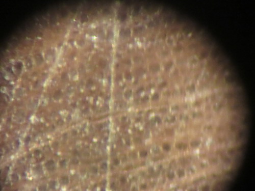 zellartige Holzstruktur ist an manchen Stücken mit Lupe oder Bino zu sehen.