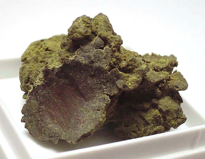 | Information: | Kleinstufen-Größe. Die bräunlichgelben bis grünlichgelben Beläge dürften hier den Humboldtin darstellen. |