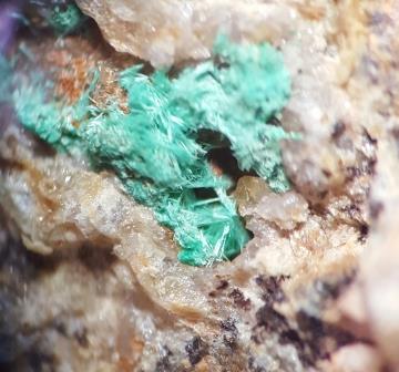 Auf einer der Halden konnte Metatorbernit, Mixit (nicht Malachit!!) Quarz und Manganminerale nachgewiesen werden.