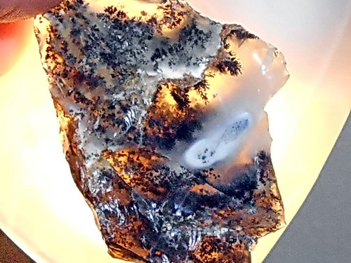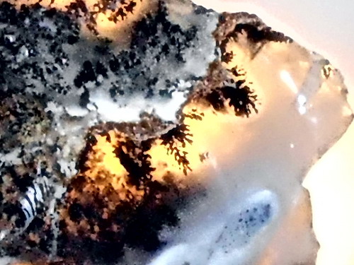 Wir sehen zunächst eine Kleinstufe mit Dendritenopal (6 cm) im Tageslicht,