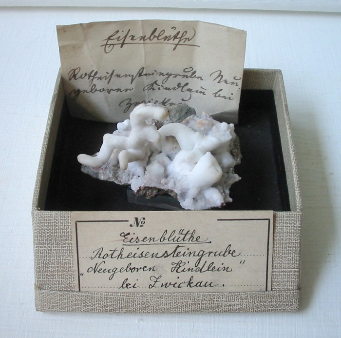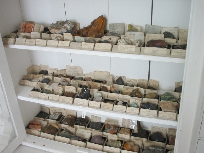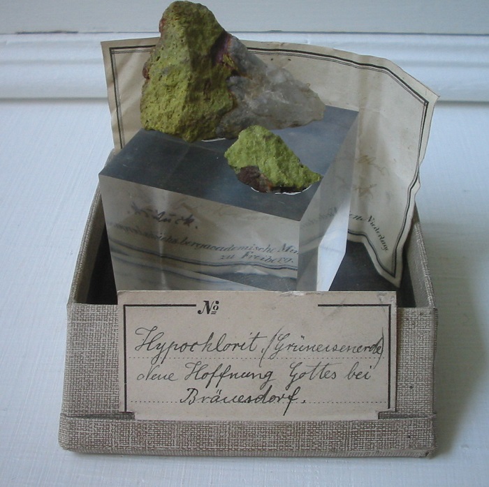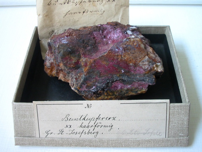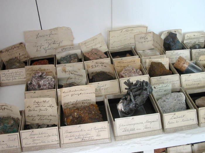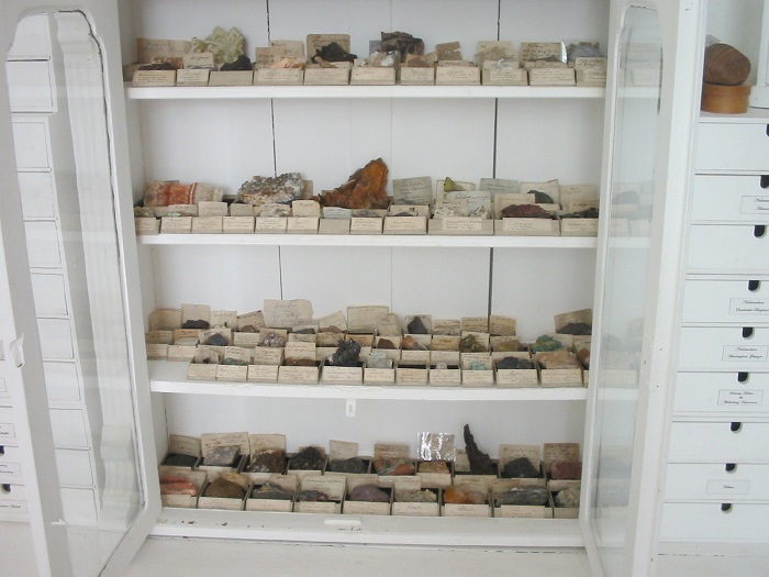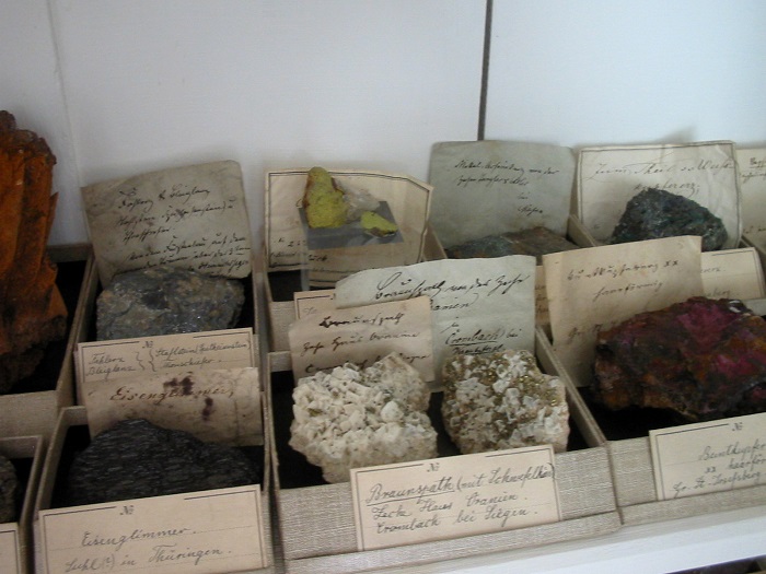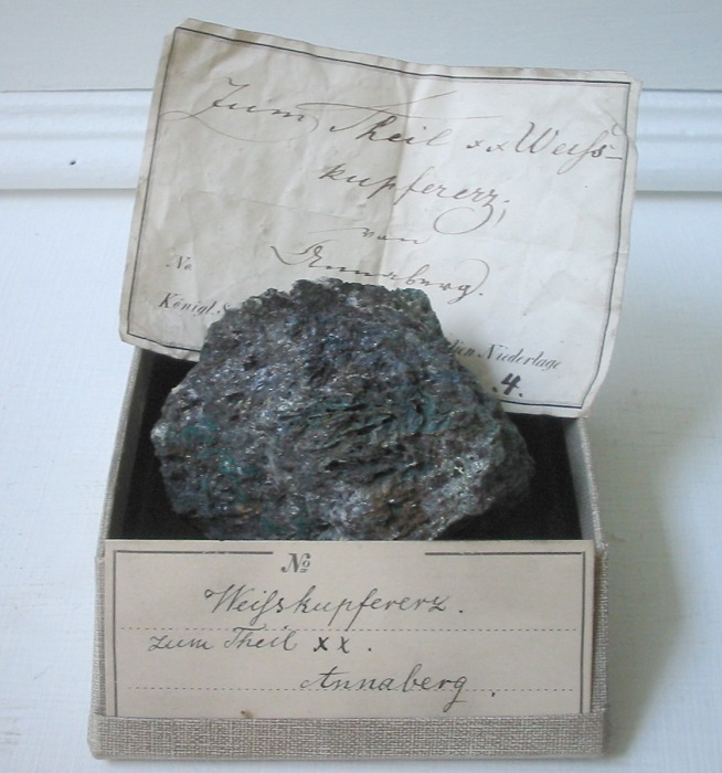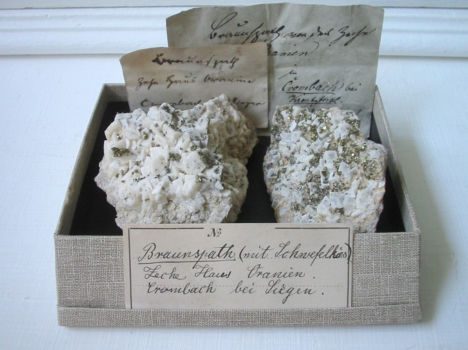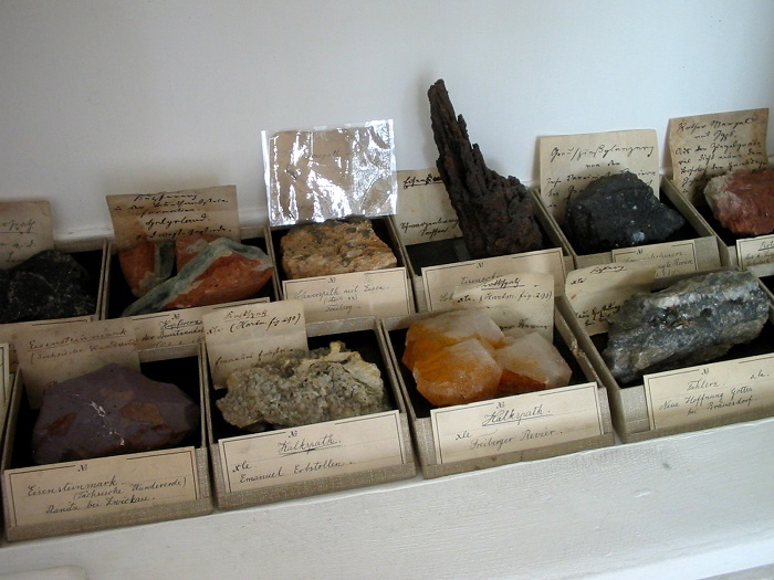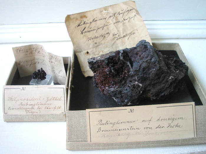 nachdem ich schon lange damit geliebäugelt hatte, die ganzen Einzelstücke einer über 150 Jahre alten Sammlung mal in einen Schrank zu packen, hab ich´s nun gemacht. Sauerland, Eifel und Hessen rausgeschmissen und auf andere Schränke verteilt und eine Vitrine leergeräumt. Nun haben 100 Stücke aus einer Lehrsammlung der Bergakademie Freiberg es wieder schön kuschelig gemütlich zusammen.