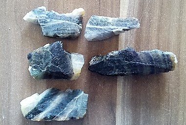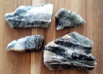 Fotos zeigen 3 Beispiele für eine derbe Mineralausbildung aus meiner Sammlung ..