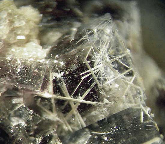 | Information: | Einschluss von Rutilnadeln in Quarz, Bildbreite 6 mm |