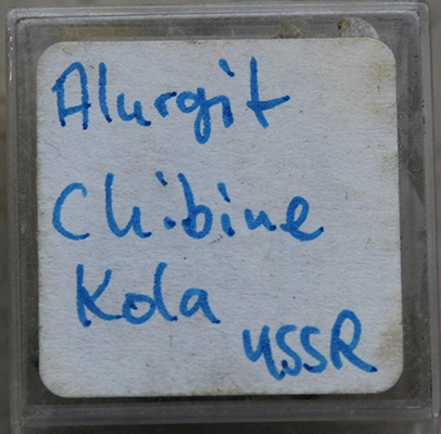 | Information: | korrekt: Alurgit, Mn-reiche Muskovit-Varietät (Glimmer-Gruppe) Fundort: Chibiny-Massiv, Kola-Halbinsel, Murmansk, Russland |