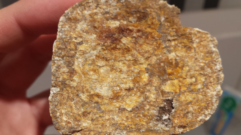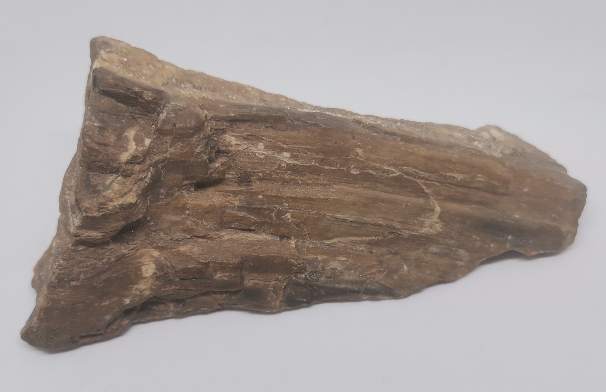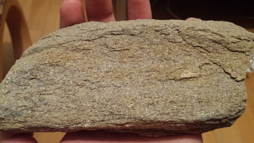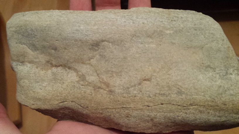 Meine Vermutung ist das es evtl versteinertes Holz sein könnte da das Teil recht leicht ist und auch sich merkwürdig anfühlt in der Hand. Wenn man dran kratzt fallen ganz dünne Schichten von der einen Seite heraus die andere Seit ist komplett glatt fast wie geschliffen.