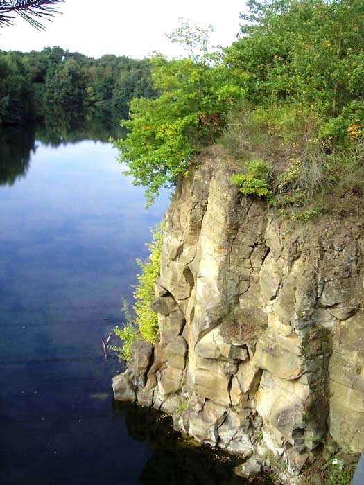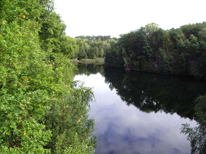 Als ich nun am Samstag, den 15. September 2012 bei idealem Spätsommer- bzw. Frühherbst-Wetter dort eintraf, bot sich mir bei meiner Wanderung durch das Naturschutzgebiet überraschenderweise ein herrliches Naturpanorama! Insbesondere von den Brücken aus konnte man die z.T. grünen Seen mit den dahinter aufragenden und geschätzten rd. 20 Meter hohen Basaltwänden erblicken. Letztere zeigten sich eindrucksvoll zwischen grüner "Mutter Natur". ;)
