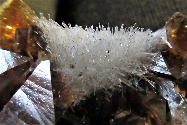 den braunen Calcit xx und den weißen Natrolithnadeln ergibt recht ästhetische Stücke.