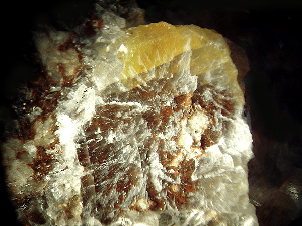 Außer Manganerz fanden sich z.T. auch herrliche, bis insgesamt 2 cm große Kristalle von Blätter-Calcit in der typisch dünntafeligen Ausbildung und in überwiegend bräunlichen und bräunlichgelben Farben. Häufig wird der Blätter-Calcit auch von sog. “Eisenrahm“, dünnen Überzügen aus Hämatit / Limonit von dunkelgrauer Farbe überzogen. Schließlich konnten ansprechende farblose Kristalle dieser Ausbildung, z.T. alleine, z.T. in Begleitung gefärbter Calcit-Kristalle gefunden werden. Viele Blättercalcit-Kristalle zeigten sich dabei auch von ihrer schönsten Seite, d.h. z.B. ohne abgeplatzte Ränder an den Kristallflächen..