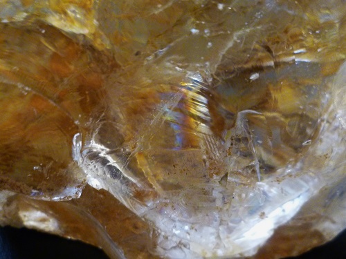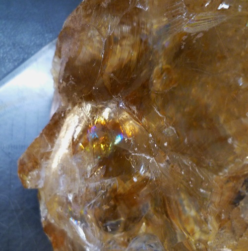 Regenbogenquarz ist eine Quarz-Varietät mit einem buntem Farbenspiel. Dieses wird hervorgerufen durch ein dünnes Lufthäutchen, als Einschluss im Quarz, an dem sich das Licht bricht. Dieses Farbenspiel kann auch durch feine Risse, die sich durch den Quarz ziehen, verursacht werden.