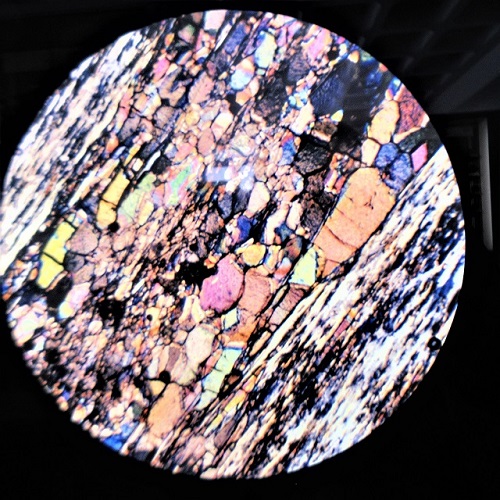 Beschreibung: Gesteinsdünnschliffe im Polarisationsmikroskop
