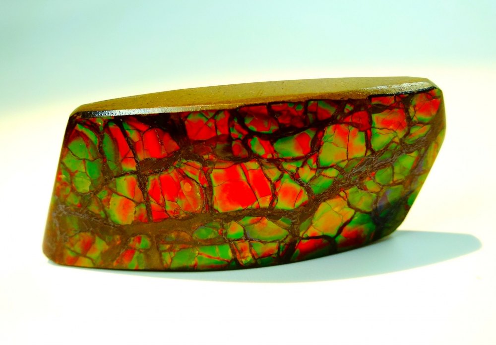 Ammolit ist ein opalähnlicher, opaleszierender organischer Edelstein, der hauptsächlich entlang der östlichen Abhänge der Rocky Mountains von Nordamerika gefunden wird. Es besteht aus den versteinerten Schalen von Ammoniten, die wiederum hauptsächlich aus Aragonit bestehen.