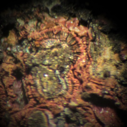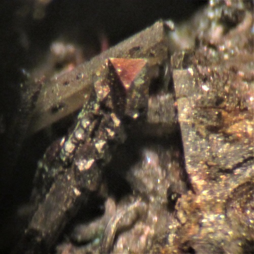 Magnetit findet sich als kleine Oktaeder auf den Augitkristallen. Aber nur als MM`s.