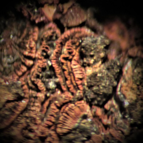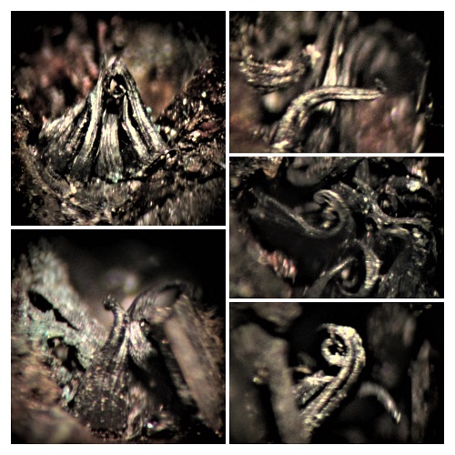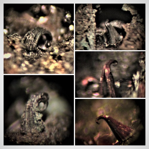 Ein Einzelfund war ein Stüfchen mit ged. Messing,das blechförmige Aggregate hat und winzige Messing-Locken bildet.