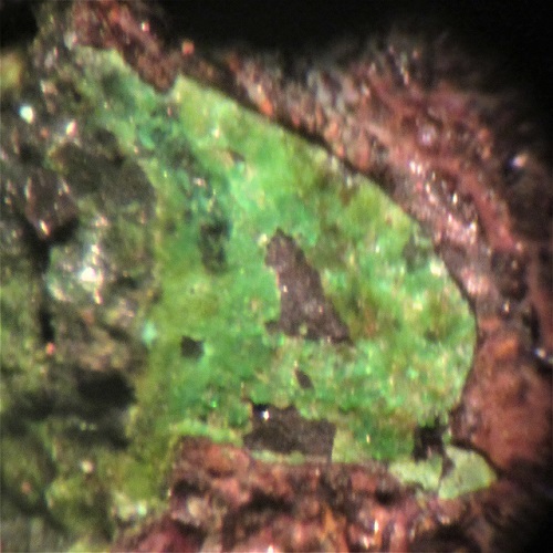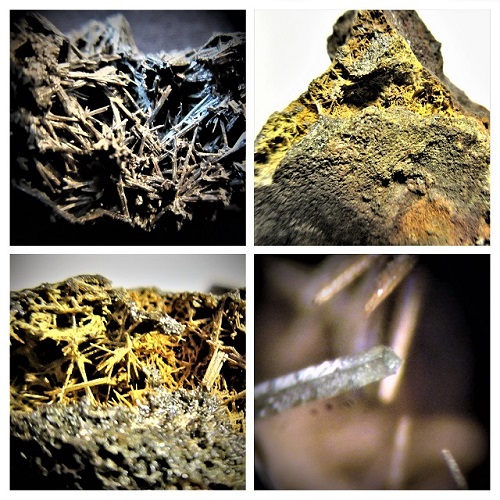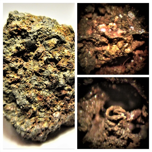 Zu finden gab`s größere Stufen mit nadeligen Augit xx und Schlacken,die mit sekundären Kupfermineralien bestückt sind. (Malachit,Brochantit,Chrysokoll,Posnjakit und vermutlich Antlerit.)