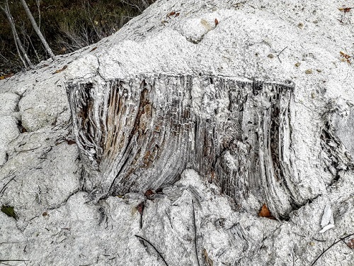 Interessant ist auch,dass die Holzstruktur teilweise von Kaolinit pseudomorph ersetzt wird.