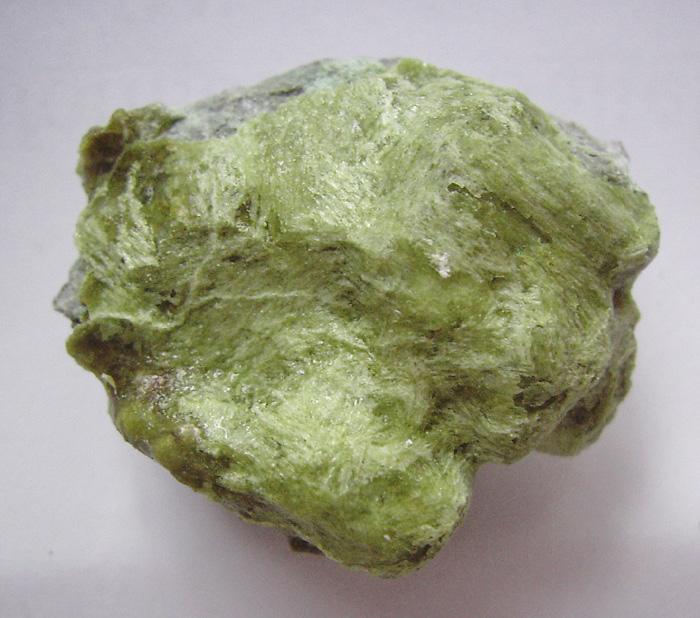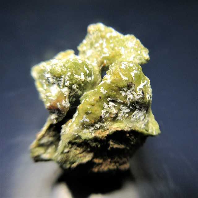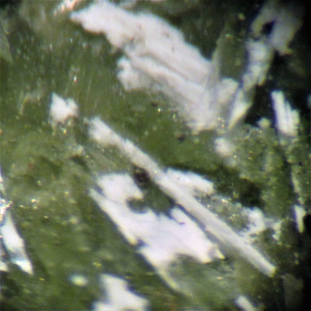 Dieses etwa 2,5 cm grosse Stüfchen mit weissen Vateritstengeln auf grünlichen Monohydrocalcit