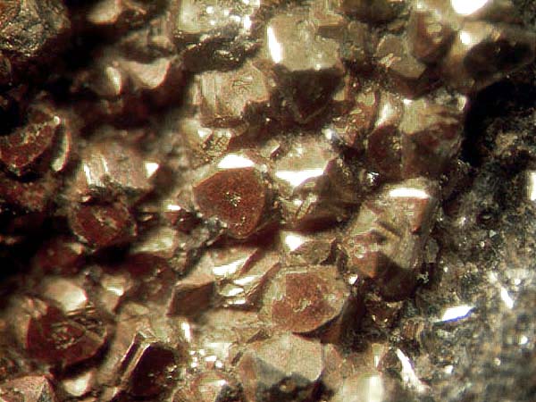 Auf einer Stufe habe ich vermutlich für mich erstmals Chlorargyrit-Kristalle gefunden (AgCl), d.h. graubraune Silberchlorid-Kristalle in Form von Hexaedern und Hexaederoktaedern (?), die auch noch z.T. verzwillingt sind. Größe der einzelnen Kristalle trotz 1 mm noch mit dem bloßen Auge gut zu erkennnen! Aber erst weitere Bestimmungen werden offenbaren, ob ich tatsächlich die begehrten Chloargyrite gefunden habe.