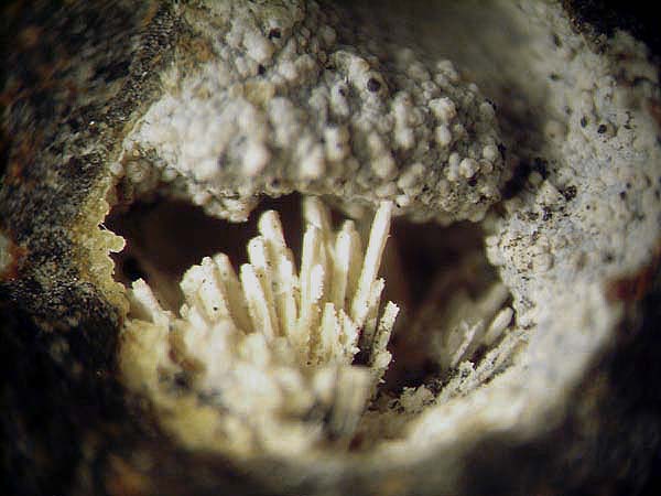 Mineralien: Analcim, Calcit, "Chabasit", Harmotom (?), Hyalit (Opal-Varietät), Levyn, Mesolith, Montmorillonit, Natrolith, Offretit, "Phillipsit", Thomsonit-Ca, weitere Zeolithe u.a Mineralien.