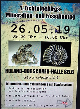 Der Veranstalter der Fichtelgebirgsmineralienbörse musste leider die für 2019 geplante 25. Fichtelgebirgsmineralienbörse aus gesundheitlichen Gründen absagen. Aus diesem Grund hat sich eine Gruppe Mineraliensammler u.a. ich entschlossen eine Ersatzbörse zu organisieren.