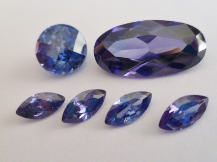 Zirkonia yttriumstabilisiert: weiß: bläulich, pink: grünlich, gelb: orange, blautopas: bläulich; amethyst lavender violett champagner peridot orange granat tansanit und smaragd keine Fluoreszenz