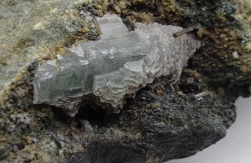Und das letzte war in einer kleineren Sammlung von hauptsächlich Schweizer Stufen. Mein Mann glaubt es könnte Smaragd sein, und die grünen Kristalle Epidot. Er verweigert Härtetests weil davon das Material verkratzt würde. Leider kann ich außer den Bildern und dem eventuellen Herkunftsort also keine Infos liefern, tut mir leid! Mehr Bilder kann ich jederzeit hochladen.