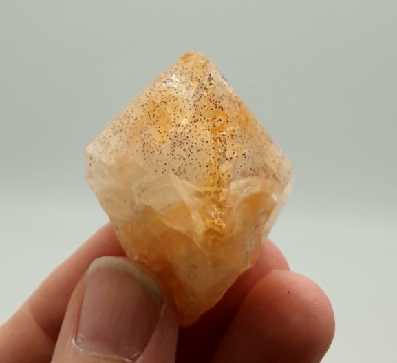 Ich habe hier einen Kristall bei dem ich mir nicht sicher bin ob es echter Zitrin oder gebrannter Amethyst ist, und was die schwarzen Pünktchen darauf sind (Hämatit?). Online finde ich nichts was ähnlich aussieht. Was sagt ihr?