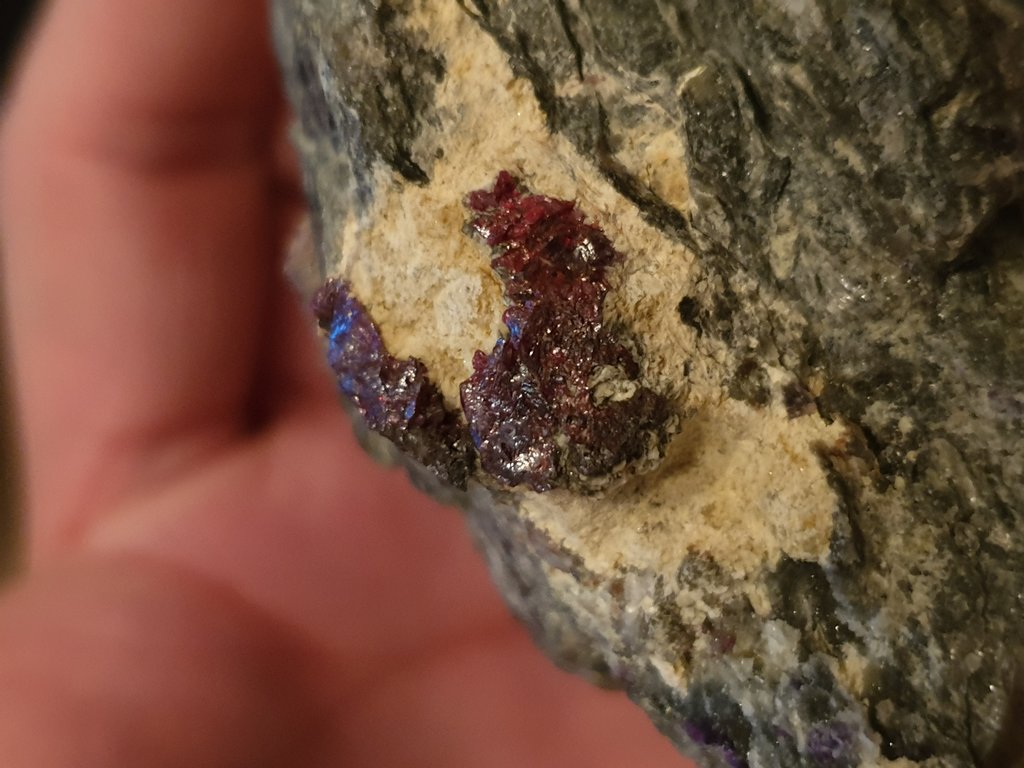 Er hat eine Proustitstufe und fragt ob er mehr von den Proustitkristallen herausputzen kann, bspw. mit Salzsäure, die laut seiner Recherche Proustit nicht angreift, aber Arsen, was wie er denkt die Matrix der Stufe ist. Bei so einer schönen Stufe will er natürlich den Proustit nicht beschädigen.
