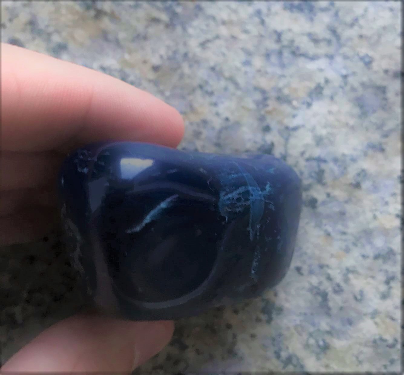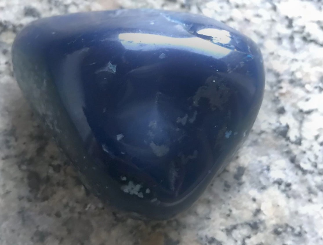 ops: .. gebt doch mal in die Bildersuche von Google die Worte "Sodalith Trommelstein" ein und schaut Euch die zahlreichen Sodalith-Trommelsteine im Vergleich dazu an. Auch die typisch weißen Maserungen lassen sich erklären. Für mich bleibt das jedenfalls Sodalith (sehr wahrscheinlich aus Bancroft, Kanada).