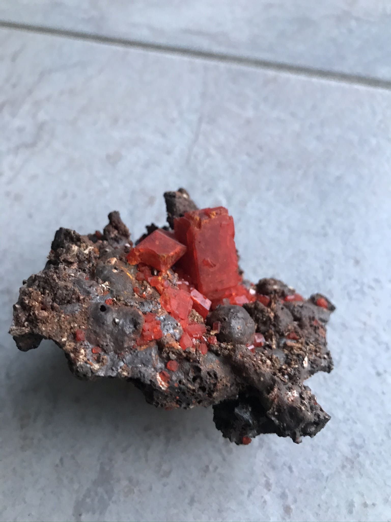 Darüber hinaus sind auch schon die merkwürdigsten Kristallzüchtungen auf unterschiedlichsten "Matritzen" durchgeführt worden. Weshalb also keine Schlacke? Selbst wenn die Schlacke natürlichen Ursprungs sein sollte und keine Industrie- oder Verhüttungsschlacke o.ä. sein sollte, so kann ich mir keinen Reim drauf, was das für dazu "passende" Kristalle sein sollten. Härte- und Strichfarbentest könnte man zwar noch durchführen aber viel bringen würde das auch nichts. Ich bleibe bei einem gezüchteten Kristall in Richtung Kalium-Chrom-Oxid. Solche Geschichten wurden mir auch schon mal als Touristen-Souvenirs (Lanzarote) auf natürlicher vulkanischer Schlacke angeboten.