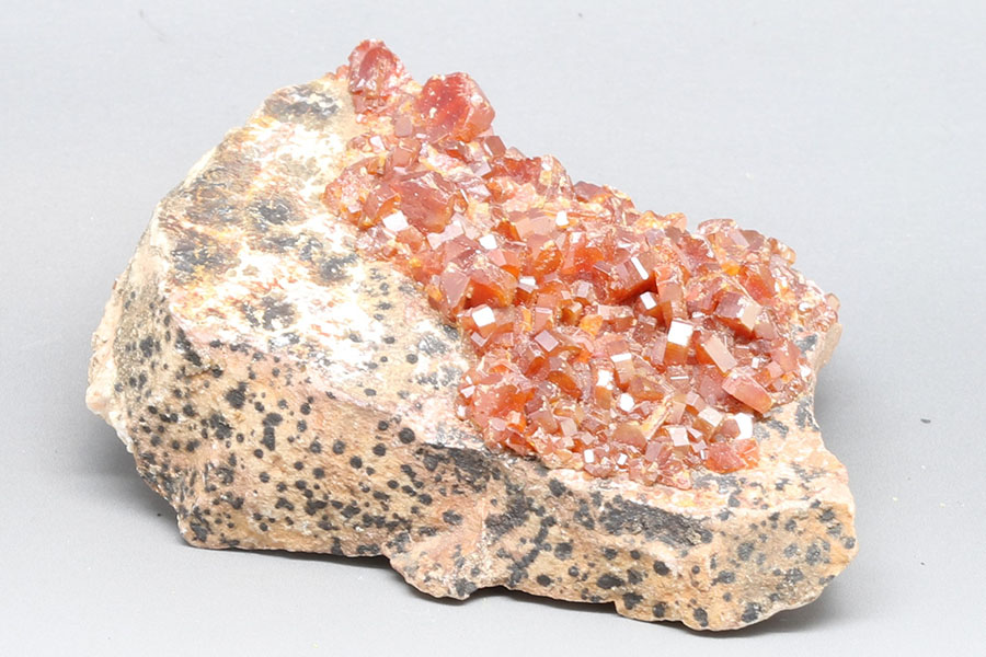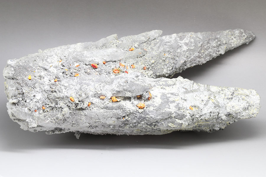 Realgar (zunächst immer rot in "frischem" Zustand) zerfällt unter Lichteinfall.