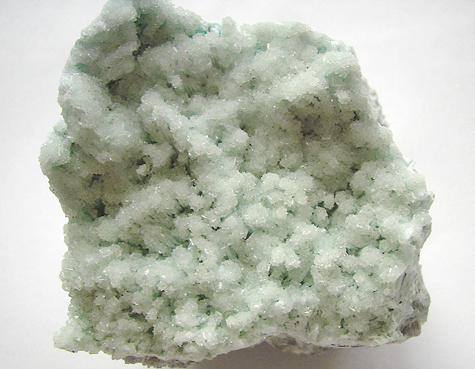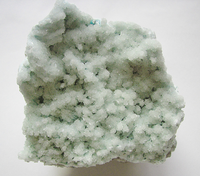 Handstufe mit hellbläulichem Tarbuttit xx; darunter Chrysokoll, von der Skorpion Mine ..