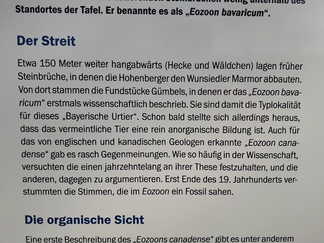 Gümbel nannte es "Eozoon bavaricum". Das bayerische Urtier. Das "Tierchen" war aber nur mikroskopisch zu sehen