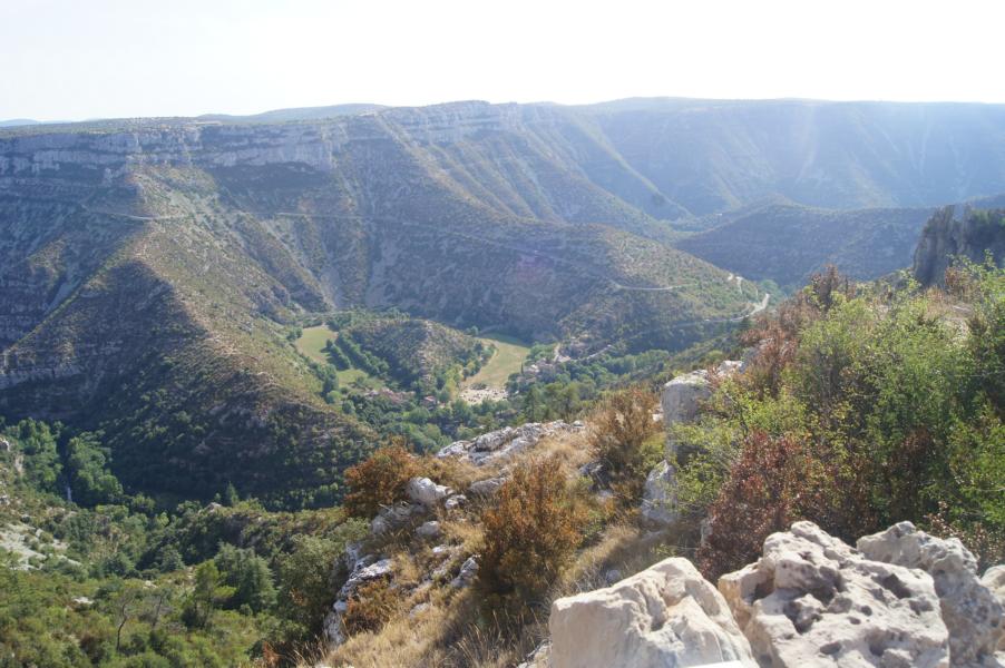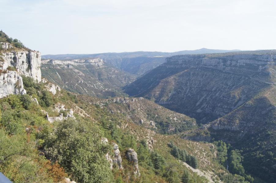 Das kleine Flüßchen Vis hat sich im Laufe der Zeit über 300 m tief in die Karsthochfläche der Causse de Blandas eingegraben und ein sehr reizvolles Tal geschaffen.