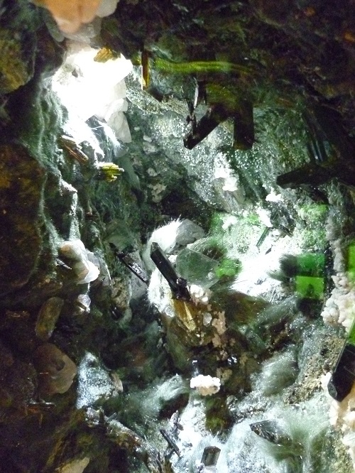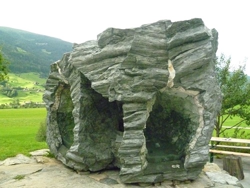So macht denn auch die Familie Steiner von sich reden, denn eine Mineralienkluft findet man normalerweise hoch oben in den Bergen und dort vor allem an den Gletscherrändern, aber es gibt eine solche auch auf dem Hof der Familie Steiner zu sehen. Logisch, daß man dann auch kurz ins Steinersche Museum schaut und sich in deren Verkaufsladen umsieht.