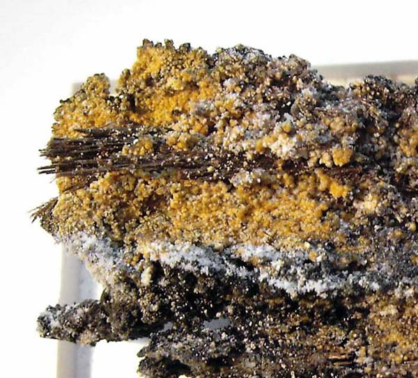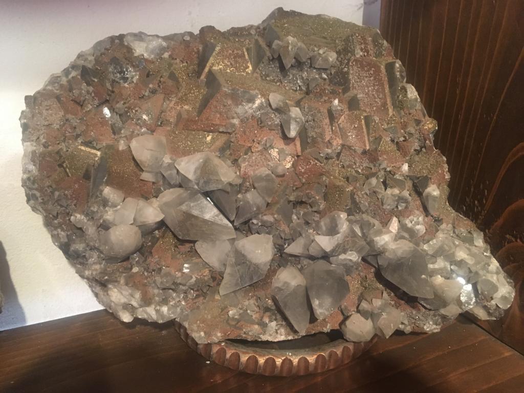 Calcit und Markasit auf Barytmatrix von der Zeche Recklinghausen II, Klärchen.