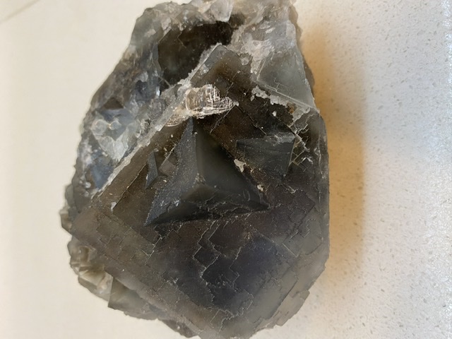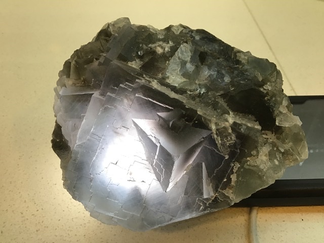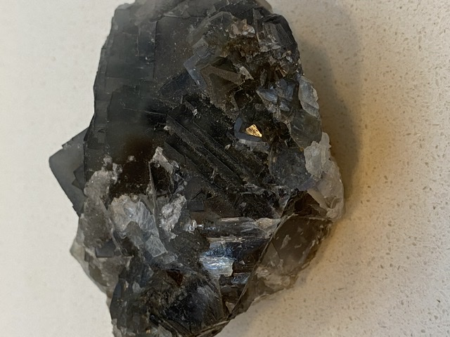 Für heute noch ein Mineral mit einer hellgrauen/lila Transparenz. 800g und 11x9x5cm.