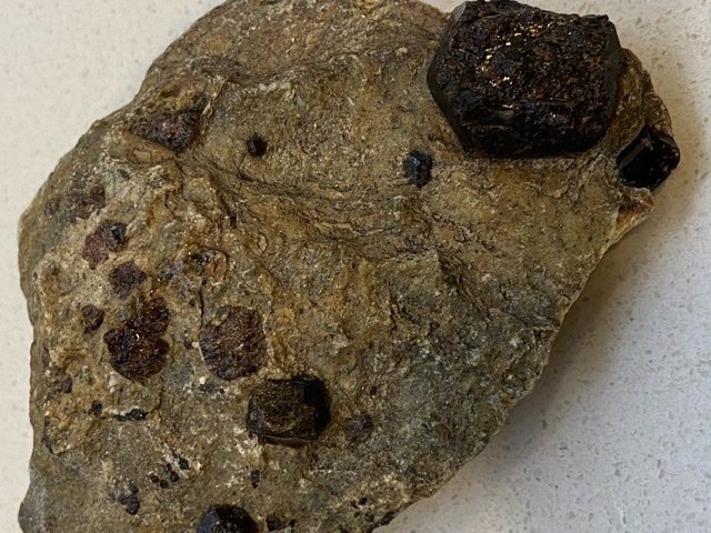 ich habe mal wieder keine Ahnung. Stufe 400g 14x8x3cm Bei den Kristallen würde mir vielleicht Granat in den Sinn kommen, aber es ist wirklich nur eine Vermutung. Unter Lichteinfluss haben die Kristalle ein tiefes dunkel-/ weinrot.