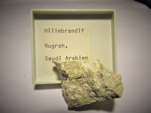 Das Calcium-Silikat Hillebrandit soll,laut Etikett, aus Nugrah in Saudi-Arabien stammen!