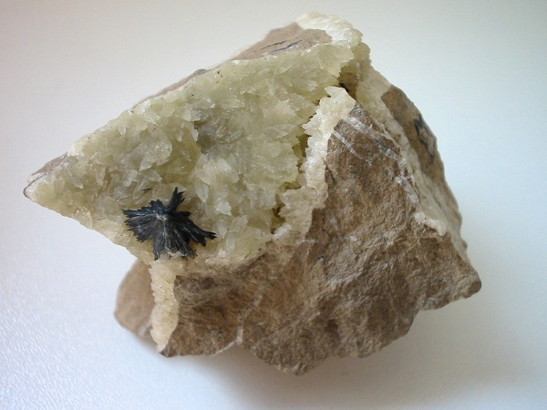 Aus regionaler Sicht schon ein bemerkenswertes Stück ist diese etwa 1,2 cm breite xx-Sonne auf Septariencalcit von Altenbeken im Eggegebirge, Ostwestfalen. |