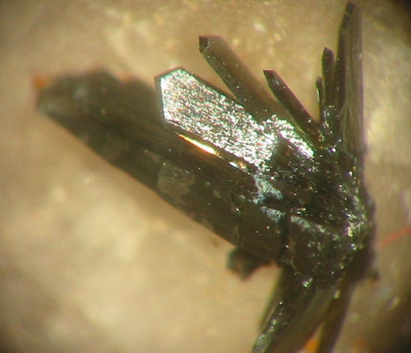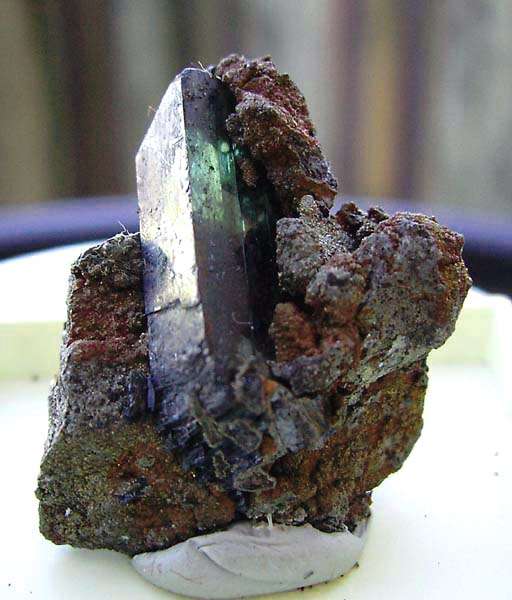 Ausschnitt eines rund 10 cm hohen Vivianit-Kristalls von der Grube Bayerland bei Waldsassen im Fichtelgebirge. |