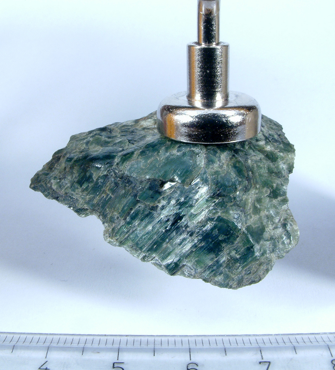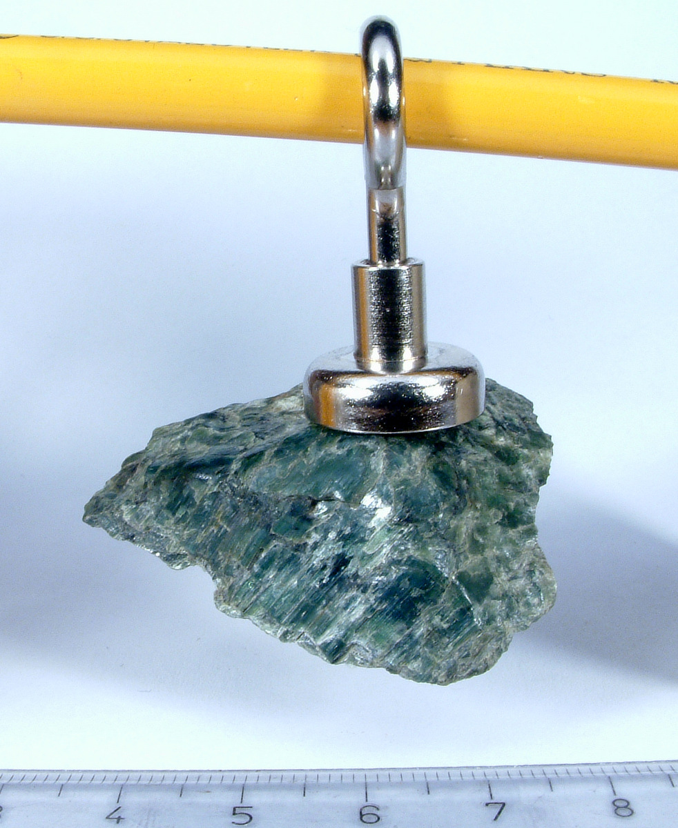 Im Engedin habe ich bei einer Wanderung dieses schöne grüne Stück gefunden, und festgestellt, dass es schwach magnetisch ist.