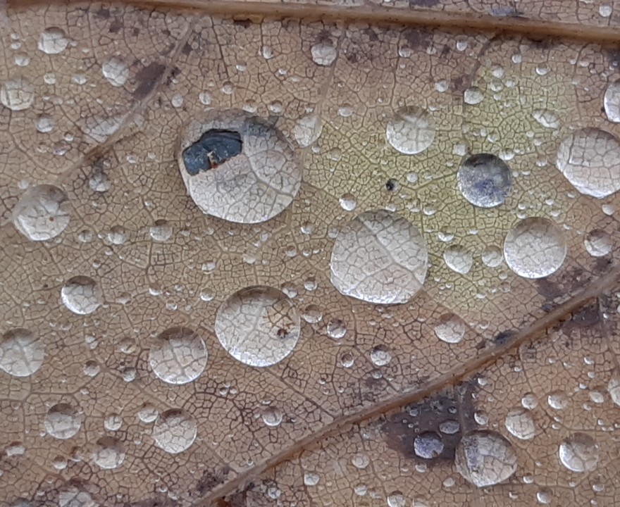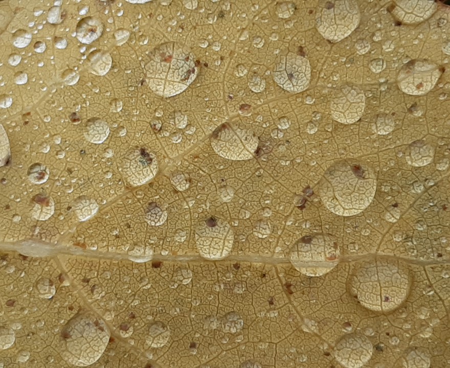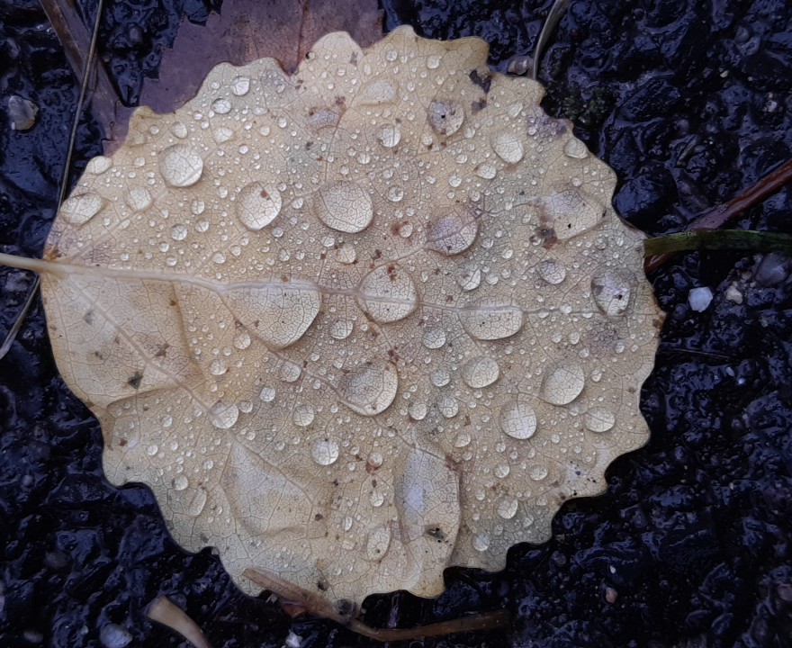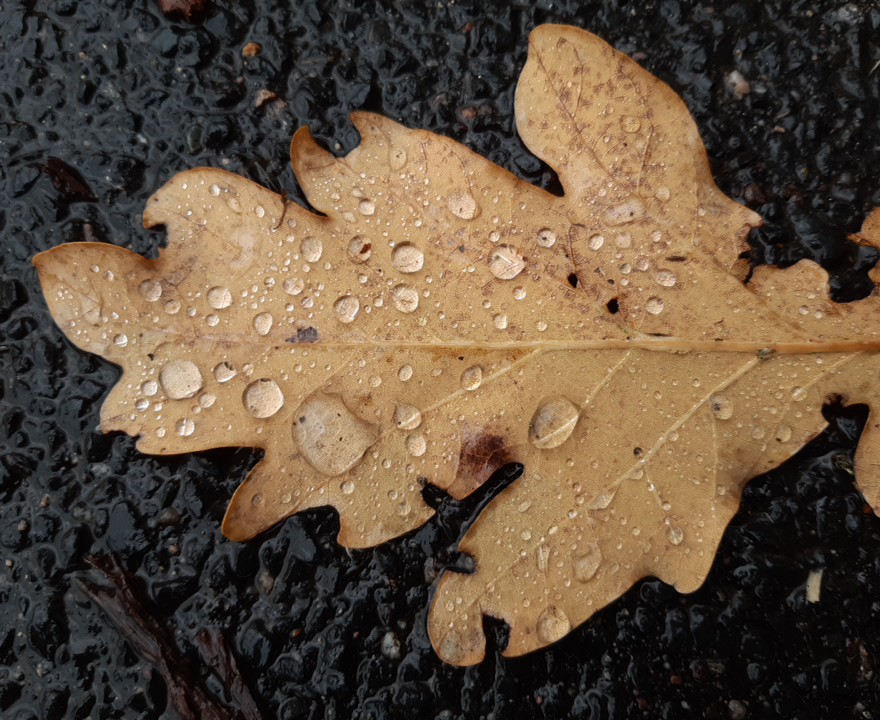 Der Anfang macht eine Bilderserie mit dem Titel "Regentropfen auf Herbstlaub".