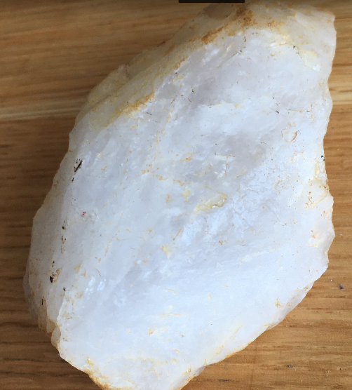 Das ist eindeutig ein Bruchstück von derbem Milchquarz. Leider kann ich keine Besonderheiten auf den Fotos erkennen. Das wird wohl aus irgendeinem Gang stammen (ein Gangquarz-Stück eben).