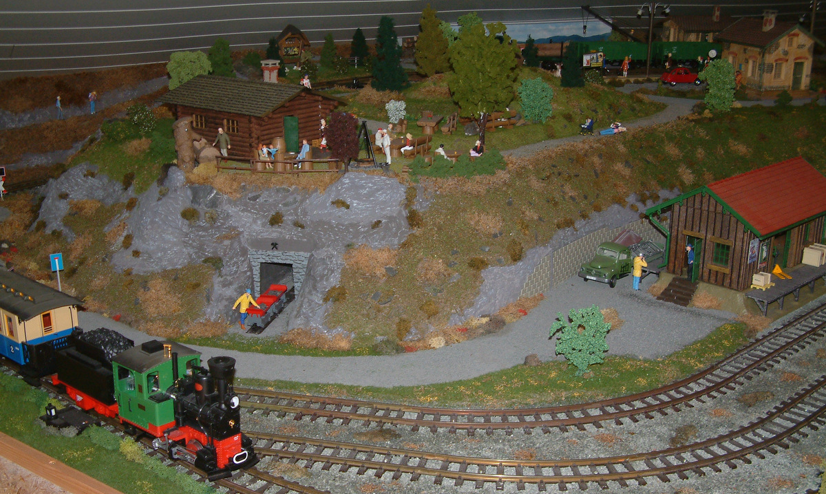 Das Stollnmundloch durfte natürlich nicht fehlen. Man beachte die kleinere Spurweite der Grubenbahn (H0 statt G).
