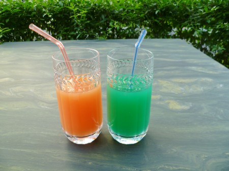 Ich bin da nicht so wild auf große oder kleine Unterschiede und gieße einfach für mich Orangensaft auf Campari mit Eiswürfeln bzw. für meinen Mann Ananassaft auf Blue Curaçao mit Eiswürfeln. Strohhalm rein und fertig ist das Cocktail-Vergnügen.